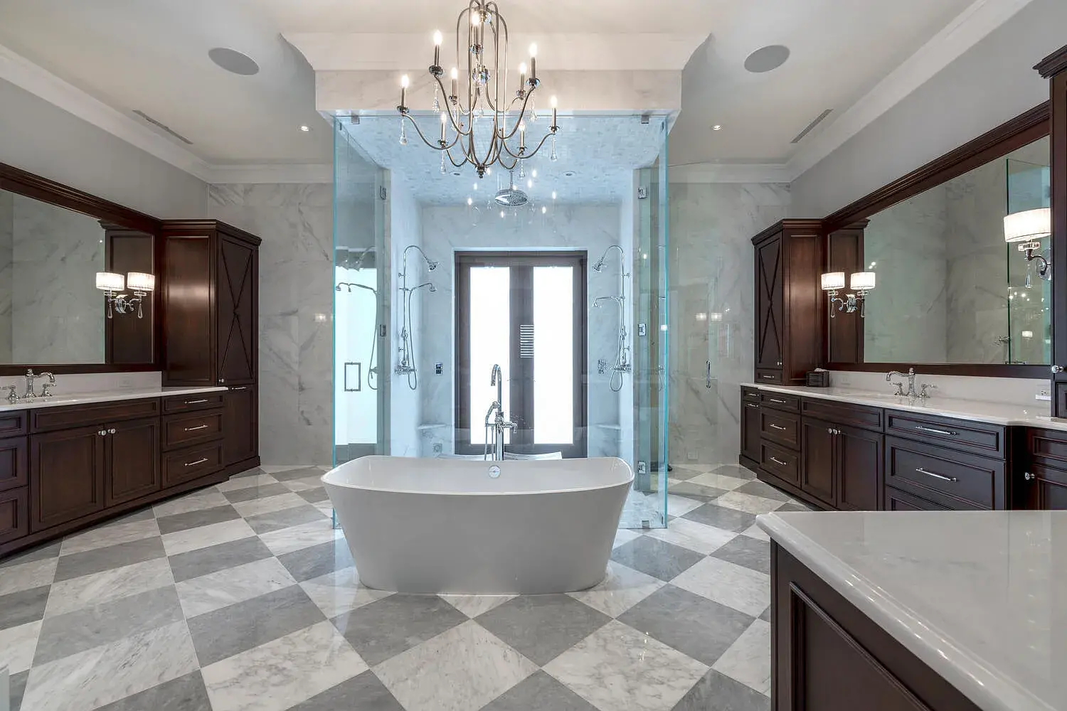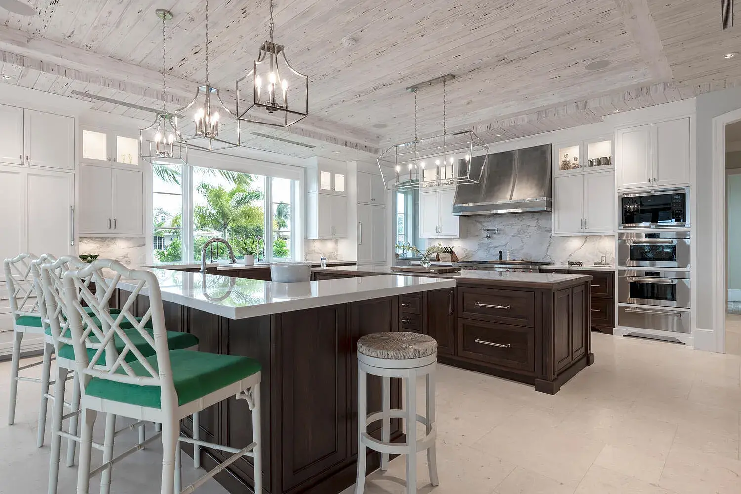 Take a tour of this beautiful waterside home in North Palm Beach! The kitchen has a charming British West Indies vibe, featuring our exclusive Private Label Beaded Inset Cabinetry in a deep, rich walnut that adds a touch of warmth and elegance.